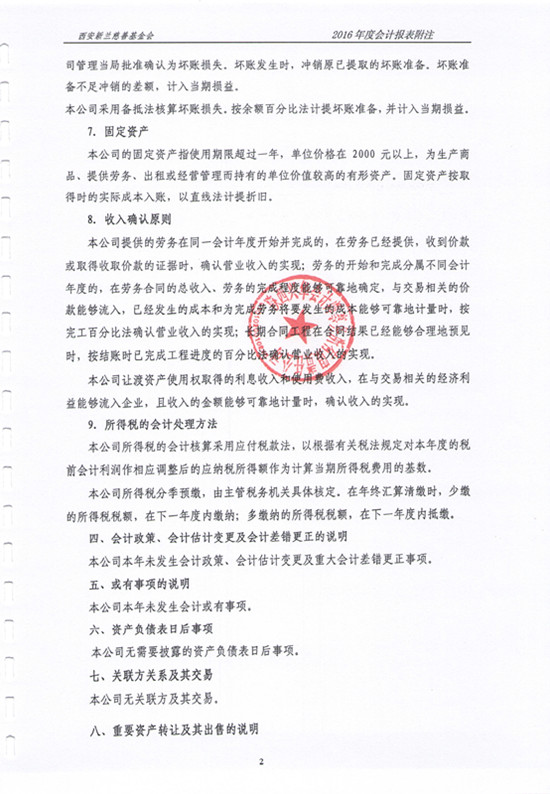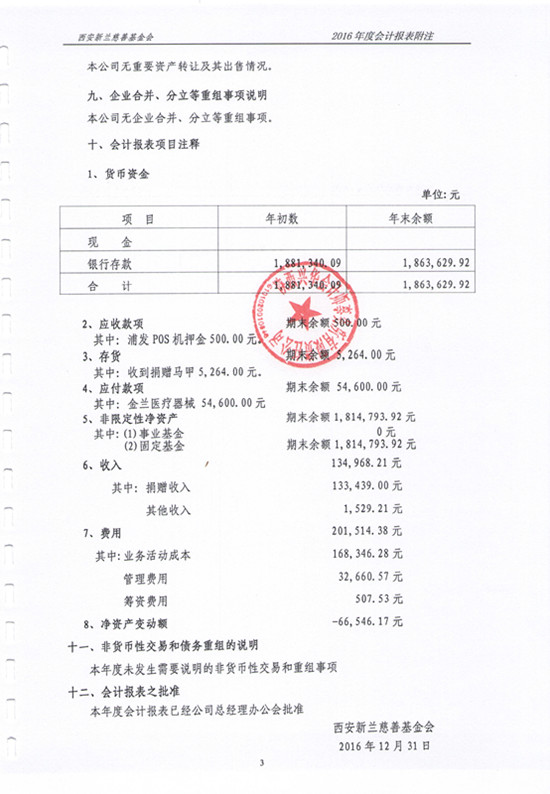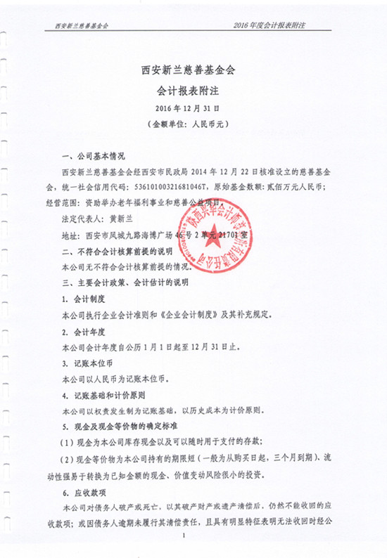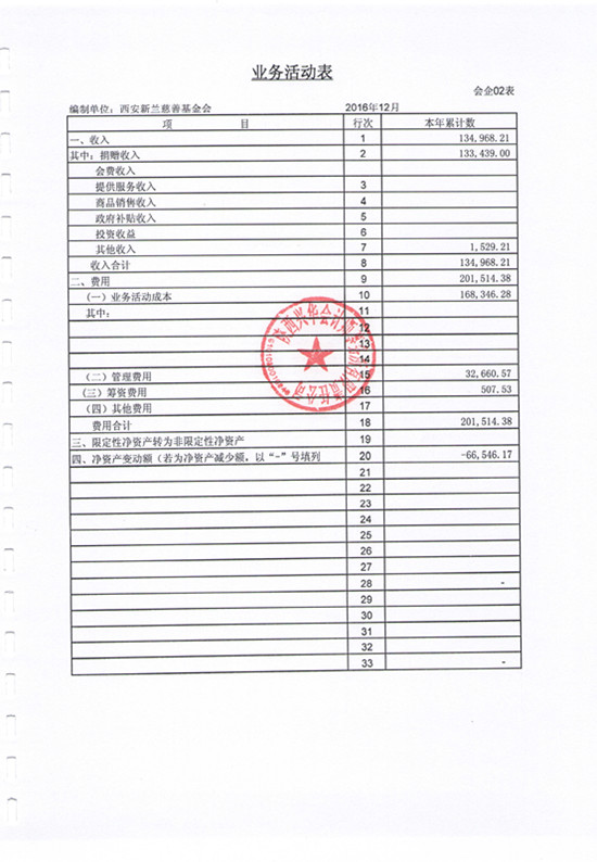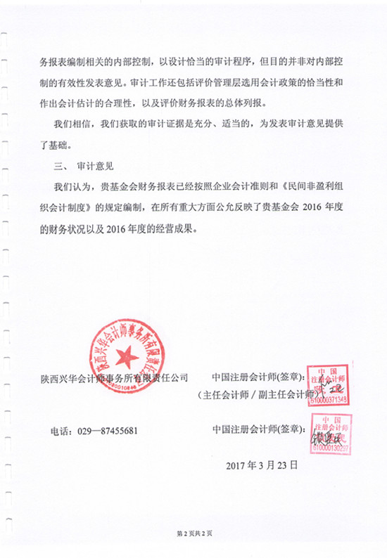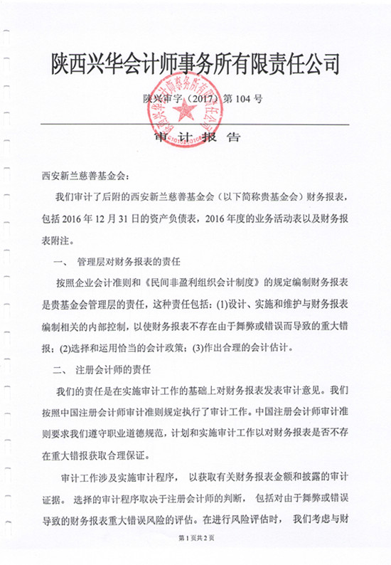2016年西安新兰慈善基金会审计报告