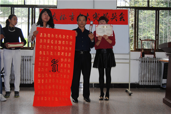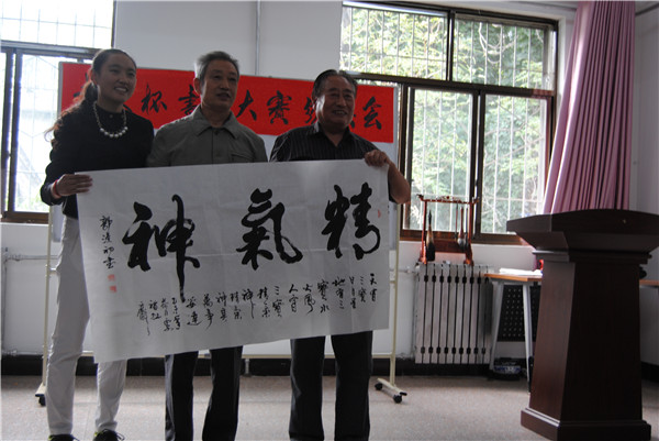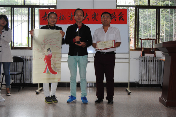 9月24日上午,积前人之学,浴墨林之风——纪念抗战胜利70周年“老友杯”书画大赛颁奖仪式在西安革命公园举行。西安市长乐宫老年公寓院长李涛、中华书画协会秘书长张修才等领导嘉宾出席颁奖仪式。