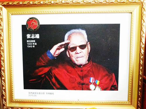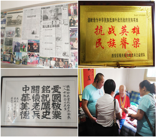 上午11点多的时候,志愿者到达了抗战英雄张志端的家里。这位传奇的老英雄出生于1915年,祖籍河北,六岁时便成为孤儿,16岁参军,卢沟桥事变发生时,他是国民革命军二十九军一名排长,曾经血战卢沟桥;抗日战争期间,装扮成妇女诱杀鬼子小队长,成为当时著名的孤胆英雄。从1937年到1945年,老英雄转战大半个中国,一直和日军作战,先后四次负伤,退伍后定居陕西户县。在了解了张老一生的光荣事迹后,志愿者们充满了钦佩和崇敬。