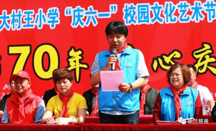大村王村小学校长为基金会和爱心机构回赠了“爱心单位”牌匾。并在讲话中表示“ 感谢你们在百忙之中,放下手中的工作,挤出宝贵的时间,来我校与我们全体师生同庆六一,感谢你们冒着蒙蒙细雨为我们送来爱的祝福、送来古城人民的美好祝愿。希望同学们勤奋努力、通过奋斗,用知识改变自己的命运、改变家庭的命运,为国家、为社会、为家乡的发展和建设贡献自己的力量!最后,向在座的各位来宾庄严承诺:我将无我,奉献教育,我将无我,奉献学生。